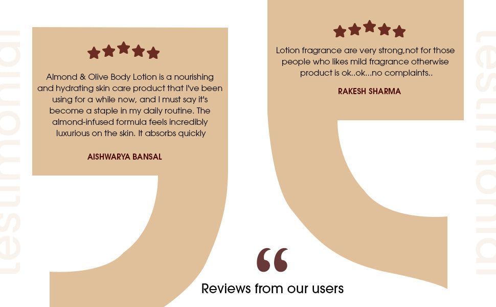 Our body lotion is a testament to embracing the expertise of Ayurveda, honed over decades of dedicated practice. This unique formulation harnesses the synergistic benefits of almond and olive oil, meticulously crafted to deliver unparalleled nourishment and care for your skin. With Vaidrishi's legacy of Ayurvedic excellence behind it, this body lotion offers a superior blend that deeply hydrates, rejuvenates, and revitalizes the skin, ensuring a luxurious and transformative skincare experience.